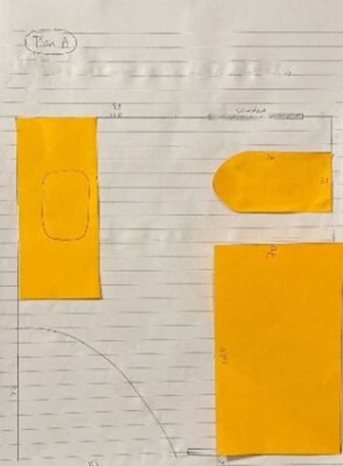 I cut out little paper shapes for the toilet, bathtub, and basin, and used blue tac to stick them onto the floor plan so I could move them around easily. When the renovation company came to give a quote, I used these plans to walk the plumber through my ideas. He was visibly impressed—especially by how movable everything was—and jokingly asked, “What profession are you in?”