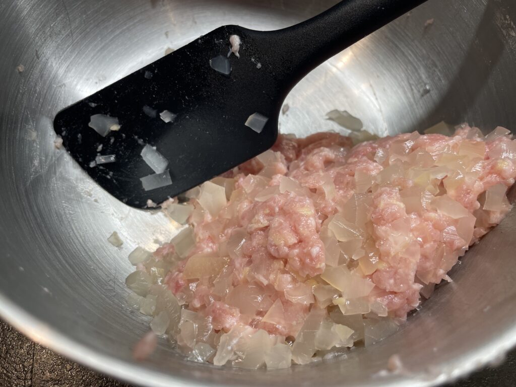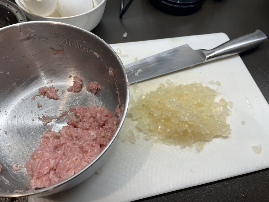 Here are 100g of seasoned minced pork and 100g of finely chopped Pork Soup Jelly